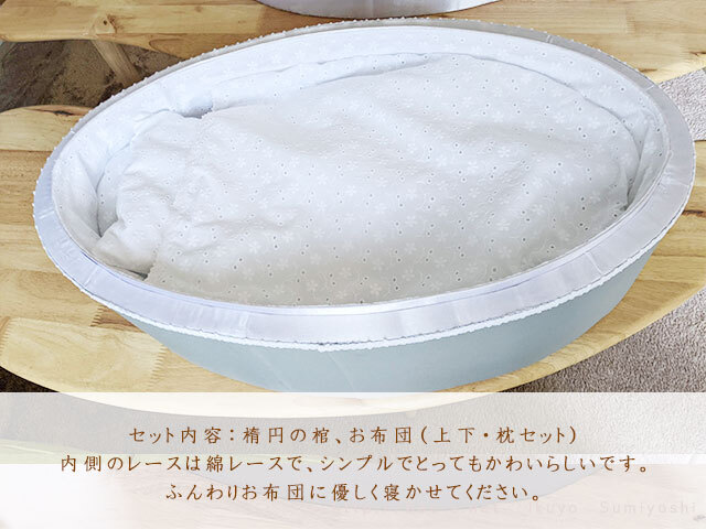 ovalcasket、お布団セット、以外のものは参考商品です。 火葬場により火葬できるものの差がございます。材質など火葬場にご確認の上でのご購入をお願いいたします。 |