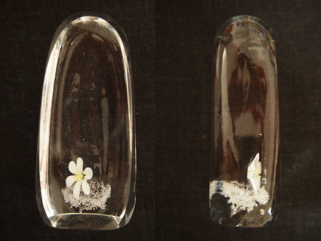 お花とバブルの入った、透明なガラスのお位牌です。