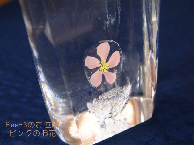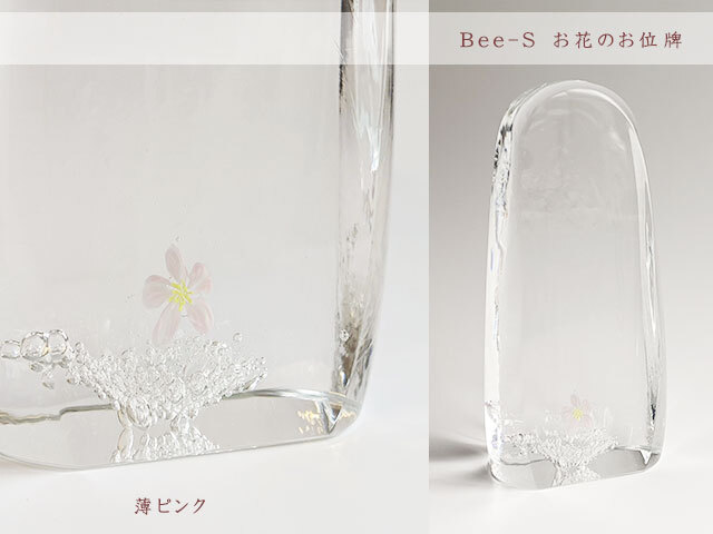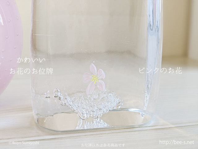 お花とバブルの入った、透明なガラスのお位牌です。