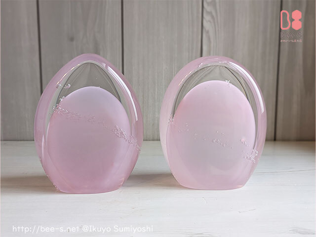 パステルのかわいいピンクがとっても愛らしく、透明なガラスと泡がキラキラ光るお位牌です。