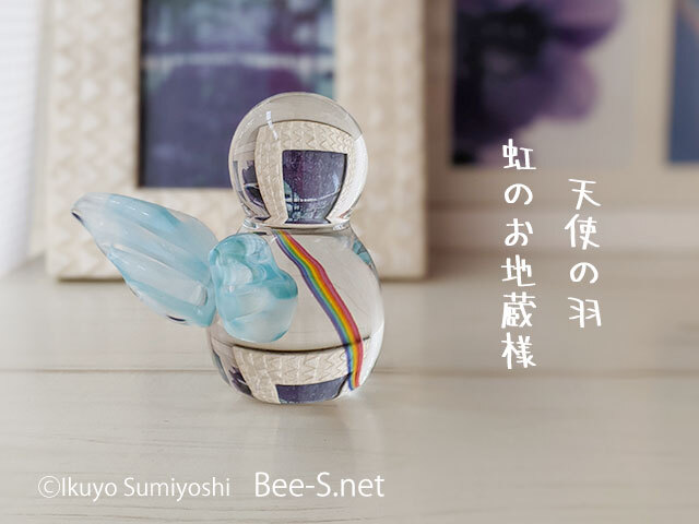 ガラス職人が手作りで心を込めてお作りする当店オリジナルデザインのガラスの羽根つきお地蔵さまです。
