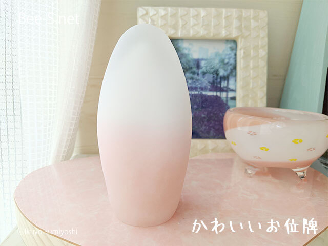 ■かわいいガラスの位牌 ピンク白のグレデーションのお位牌