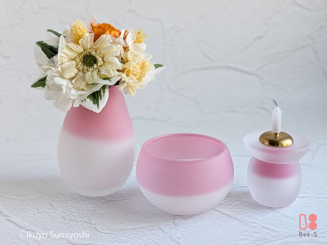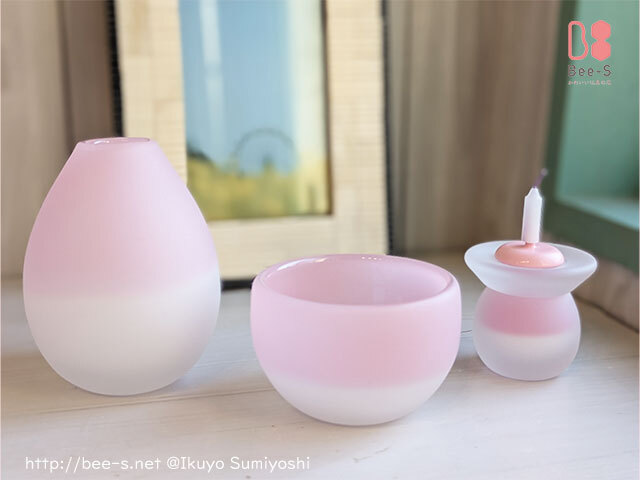 ガラス職人が、一つひとつ心を込めて。私が大切な人に贈りたいと思う色柄で作り上げる、当店オリジナルの仏具です。