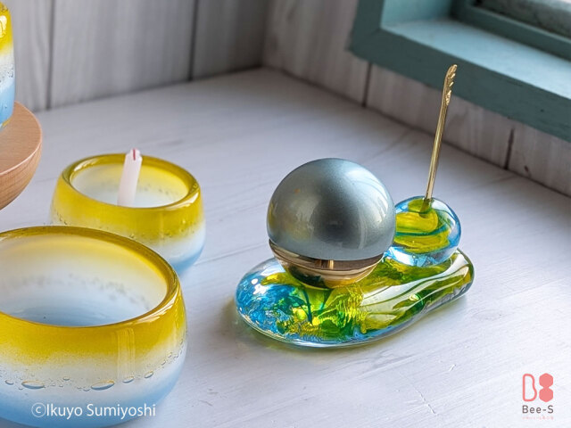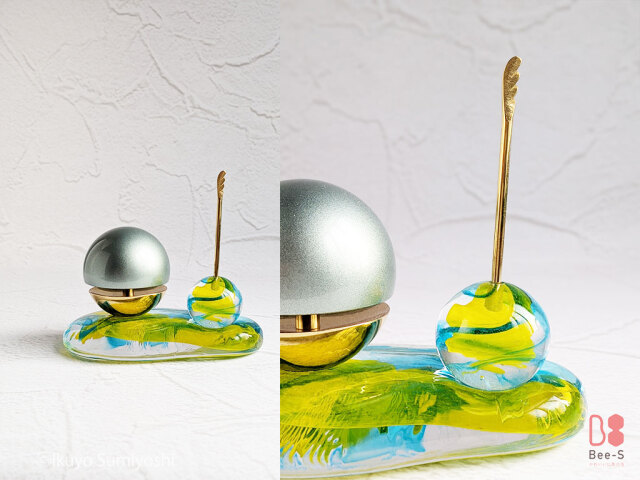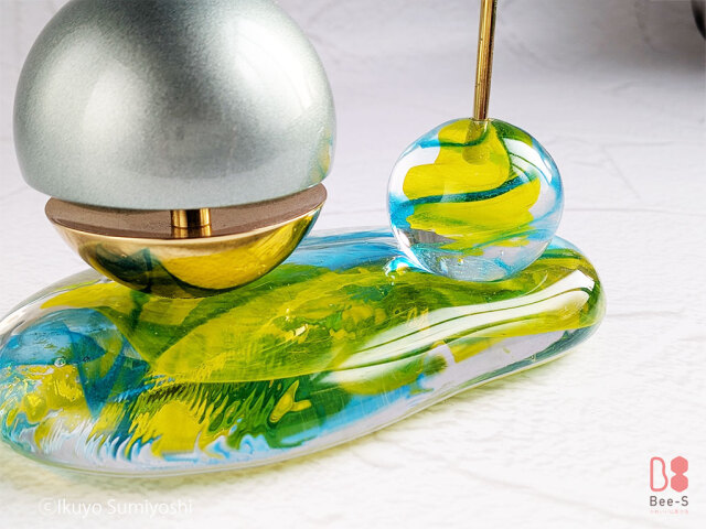 グッドデザイン賞を受賞した人気の「たまゆらりん」に、Bee-Sオリジナルの透明感あふれるガラスの台(ステージ)とりん棒を組み合わせました。